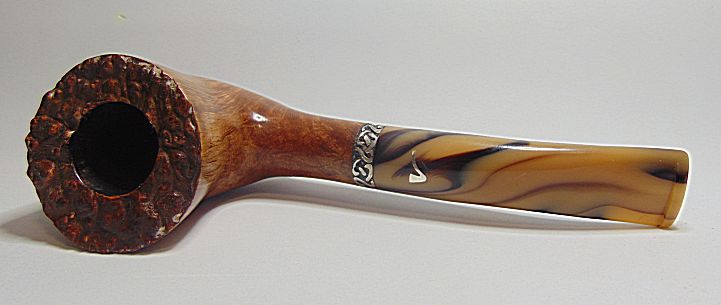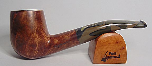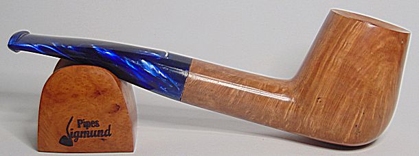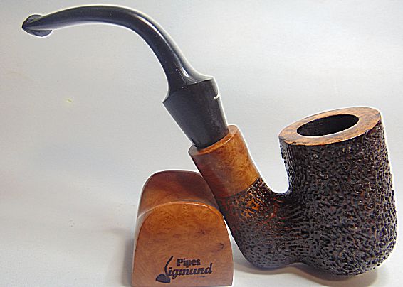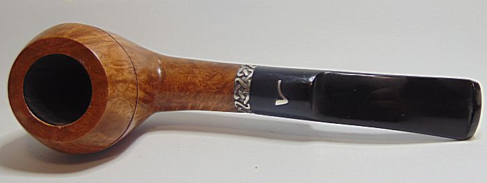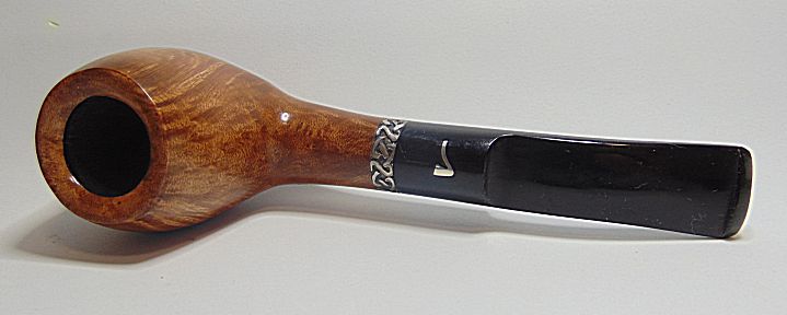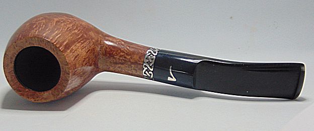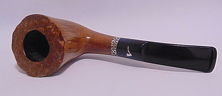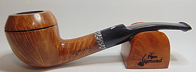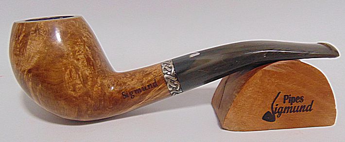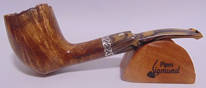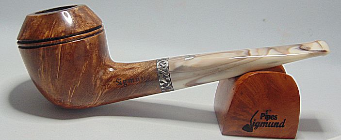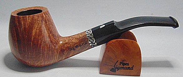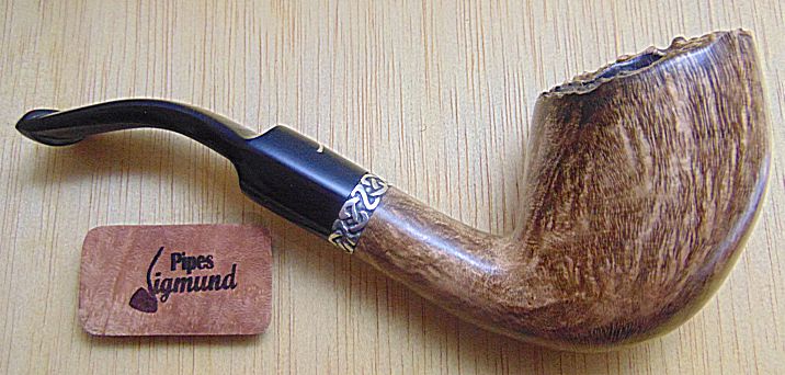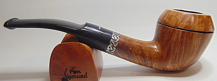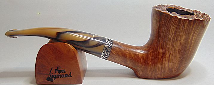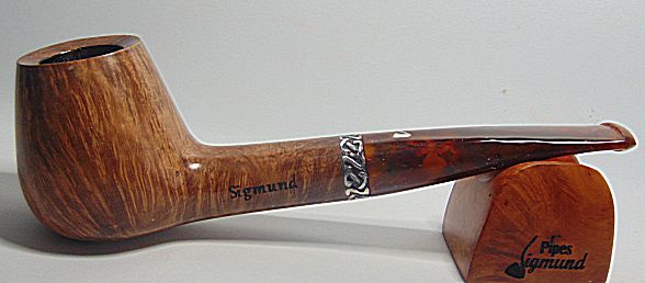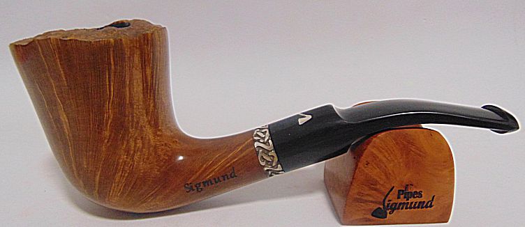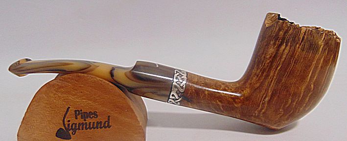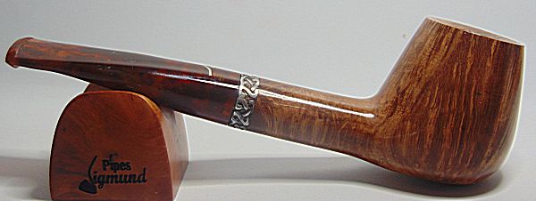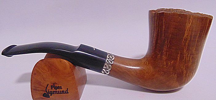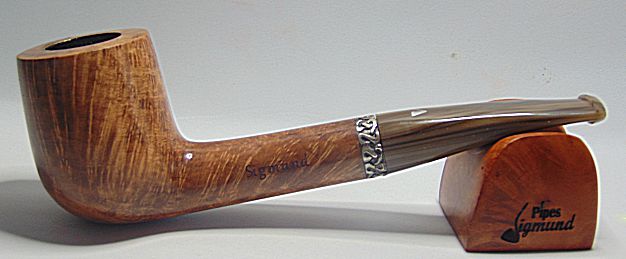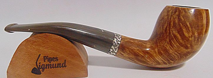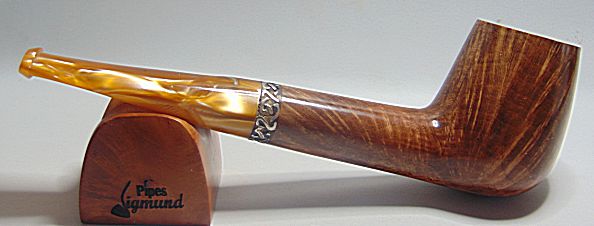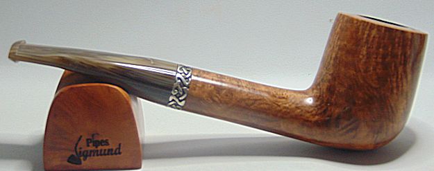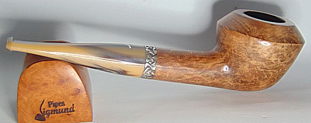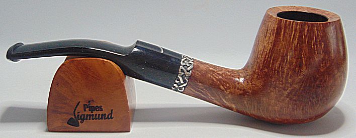 Tamaño medio con la boca natural de la corteza del brezo, muy buen veteado, aro de plata Sigmund y boquilla en tono asta