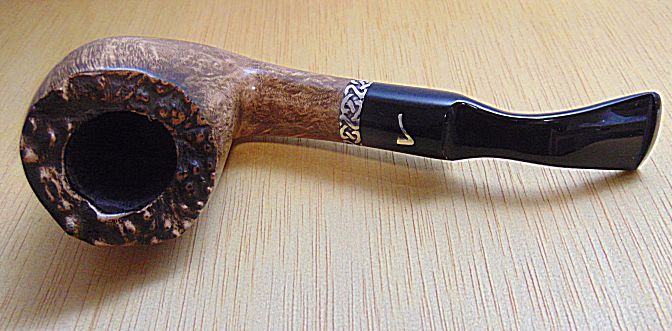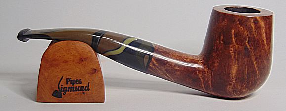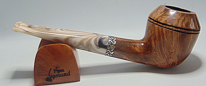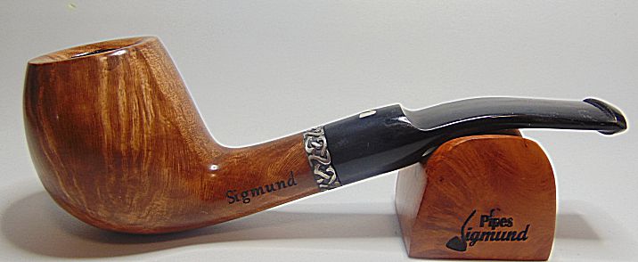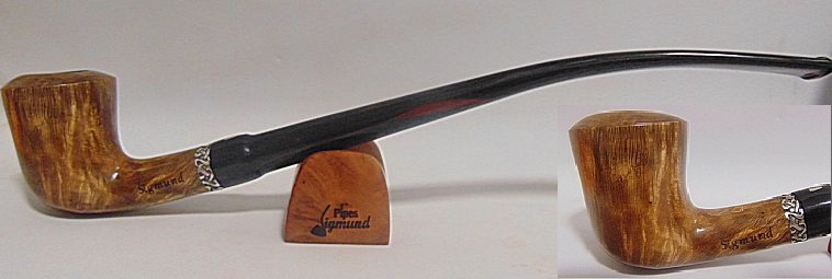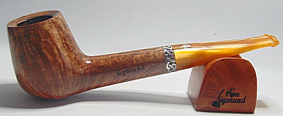 Tono marrón, buena capacidad, aro de plata Sigmund, pipa bastante larga lo que la hace de fumada mas fria