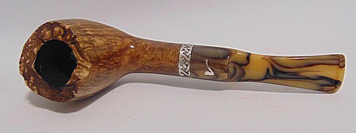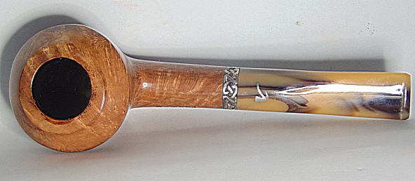 Cazoleta en tono marrón claro on un veteado excepcional, aro de plata Sigmund y boquilla en imitacion ámbar