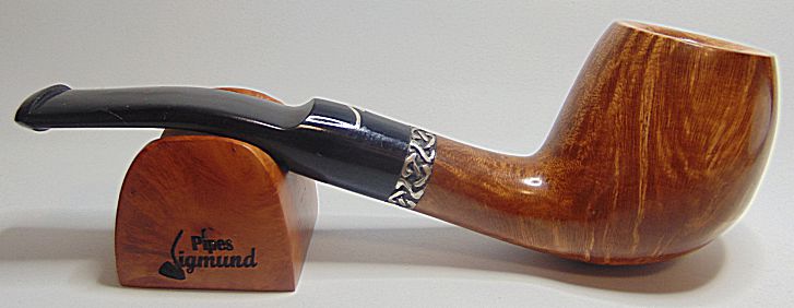 Pipa en forma «libre» con un veteado perfecto, tono marrón claro natural, aro de plata Sigmund.