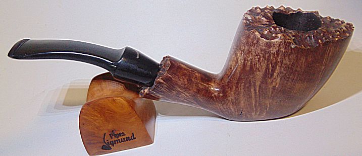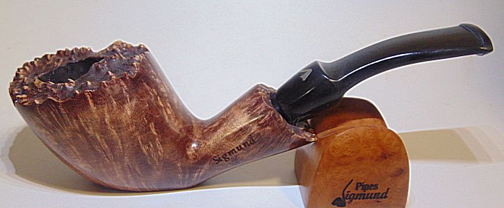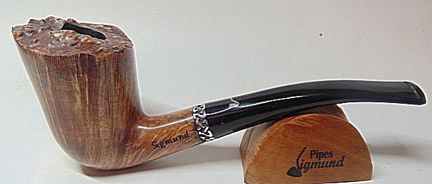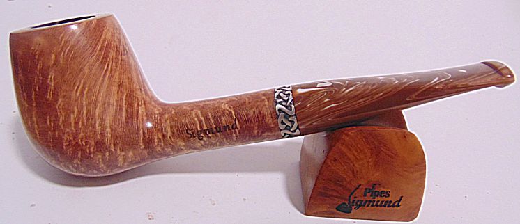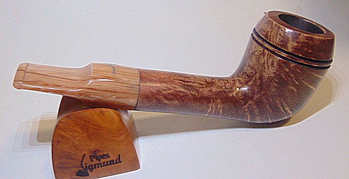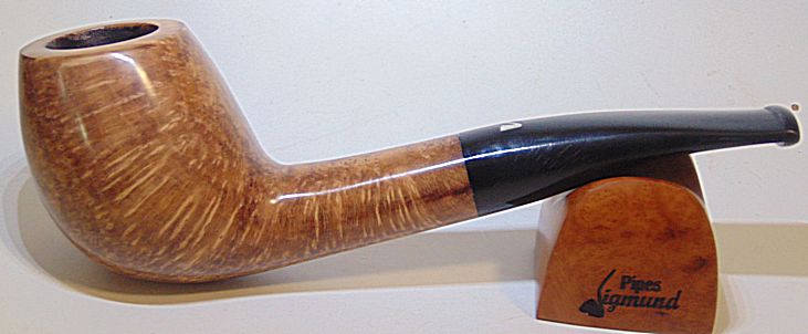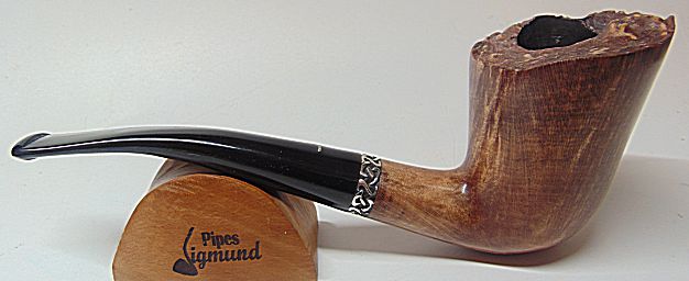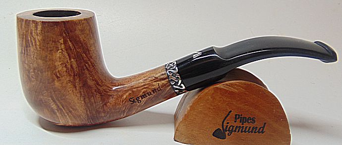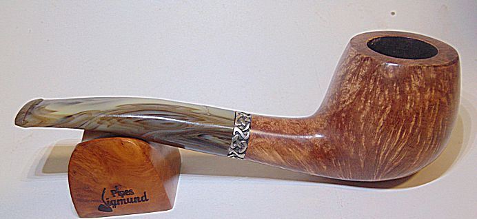 Pipa en forma «libre» buen veteado en tono marrón claro, boca natural del brezo, aro de plata Sigmund