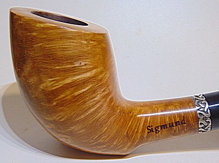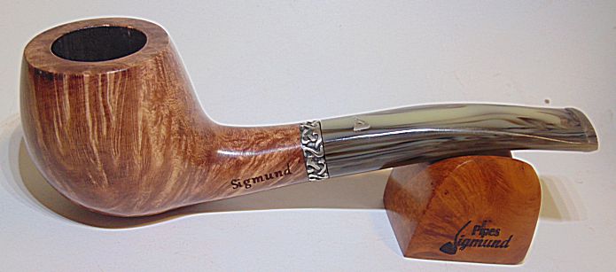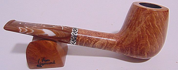 Pipa en tono avellana claro, veteado perfecto, aro de plata Sigmund y boquilla en tono marrón/blanco