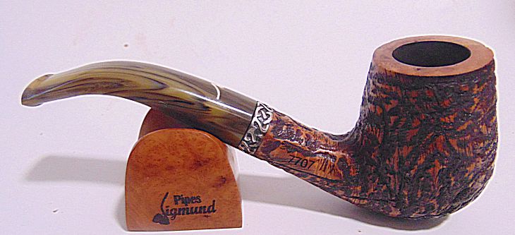 Cazoleta de forma «abierta» buen veteado y buena capacidad aro de plata Sigmund, base plana que la mantiene de pie